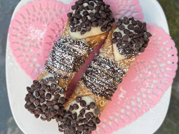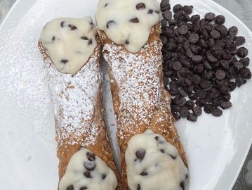 Our delicious chocolate cannoli cream topped with chocolate chips