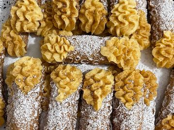 Kit includes 6 large shells , our delicious traditional cannoli cream ready to pipe in a pastry bag, chocolate chips, sprinkles, or pistachios and powdered sugar